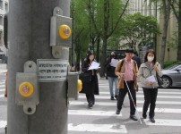 시각장애인 음향신호기, 보행시간 알려주는 ‘맞춤 안내’ 도입 시범운영 현장에서 시각장애인과 공단 연구진이 평가중이..