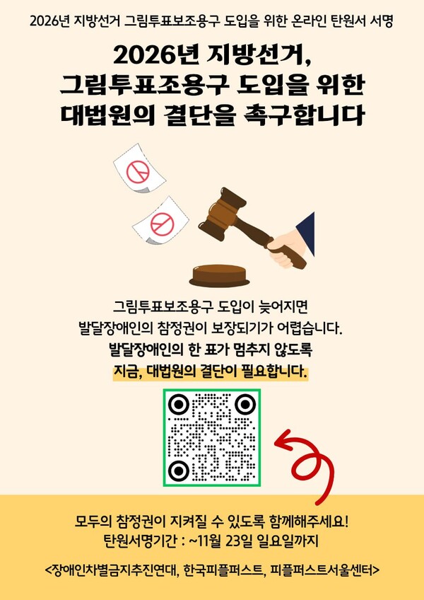 장애인차별금지추진연대(장추련) 등이 대법원의 ‘그림투표보조용구 도입’ 판결 촉구를 위해 오는 23일까지 탄원서명을 받는다.ⓒ장애인차별금지추진연대